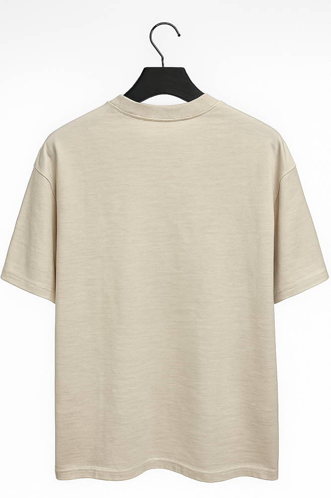 تيشيرت أوفر سايز بلون بيج فاتح مائل للعاجي (Ivory Beige) يتميّز بتصميم بسيط وراقي يجمع بين الأناقة والراحة.